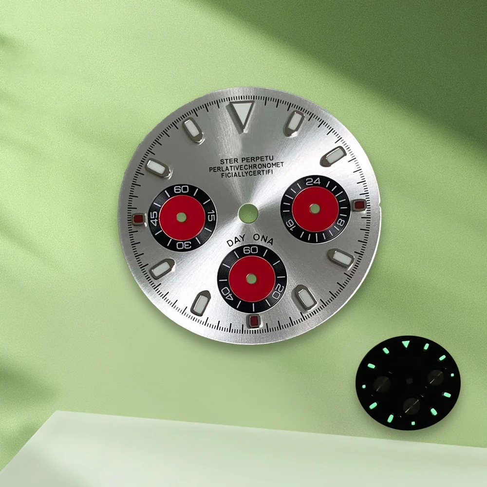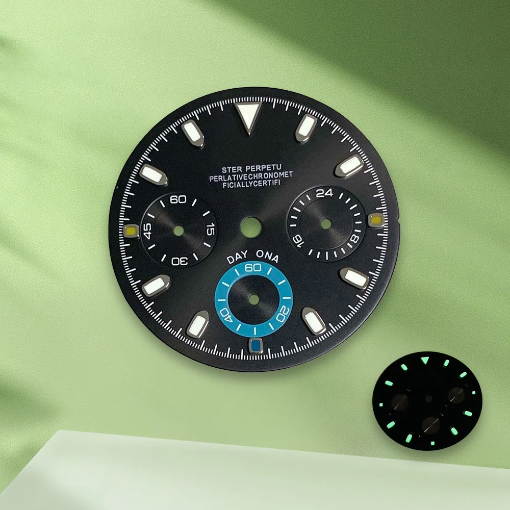 29.8mm S Logo Colorful Panda Dial VK63 dial No Hands Suitable for VK63 Movement Green Luminous Watch Modification Accessories