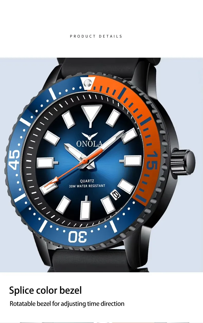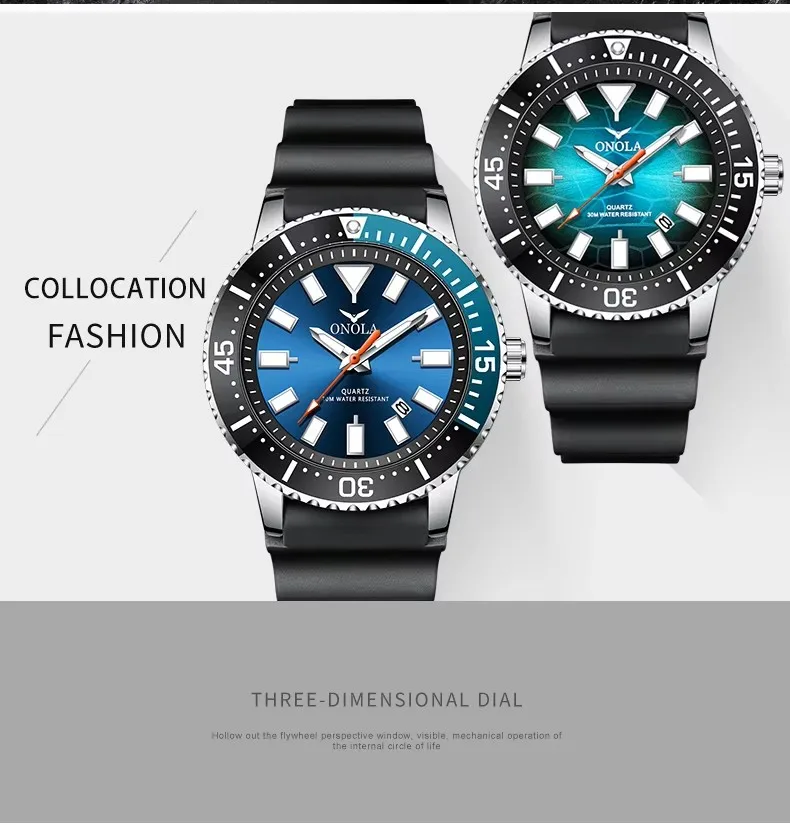 ساعة ONOLA 3850 الجديدة للرجال، ساعة يد رجالية للأعمال، حزام من السيليكون، مقاومة للماء، ساعة كوارتز ترفيهية للرجال