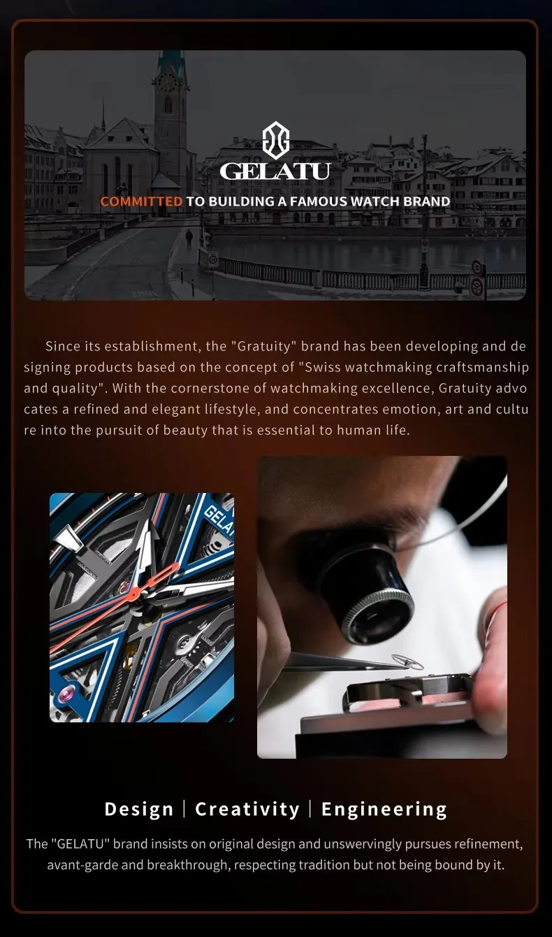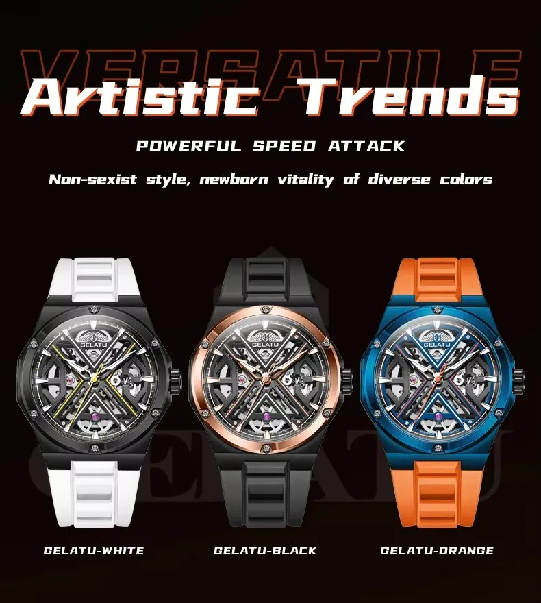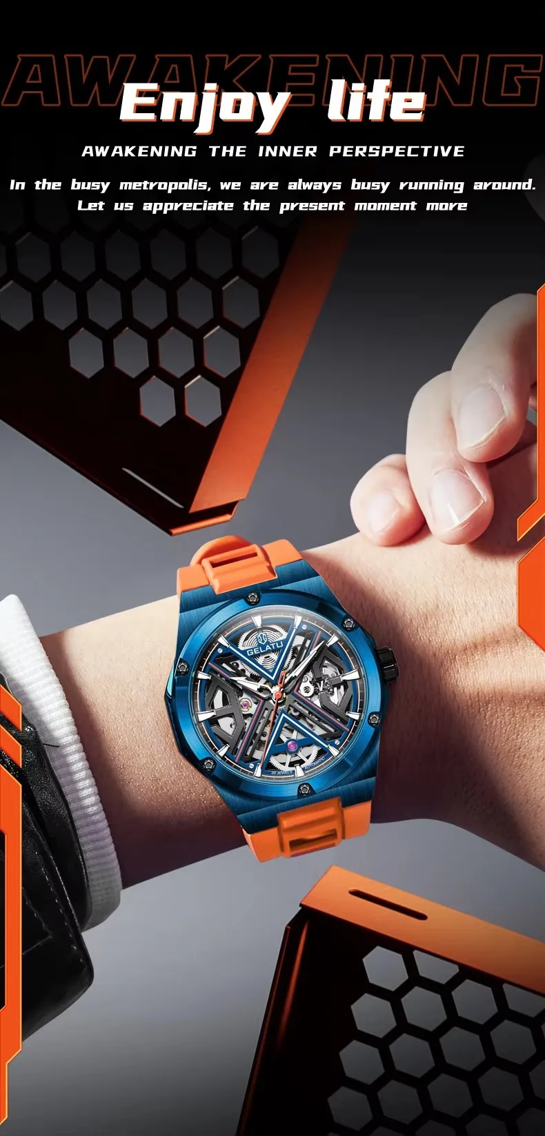 GELATU 6006 Sport Mechanical Watch For Men Hollow Skeleton Deep Waterproof Silicone Strap Wristwatch Luxury Watches Men