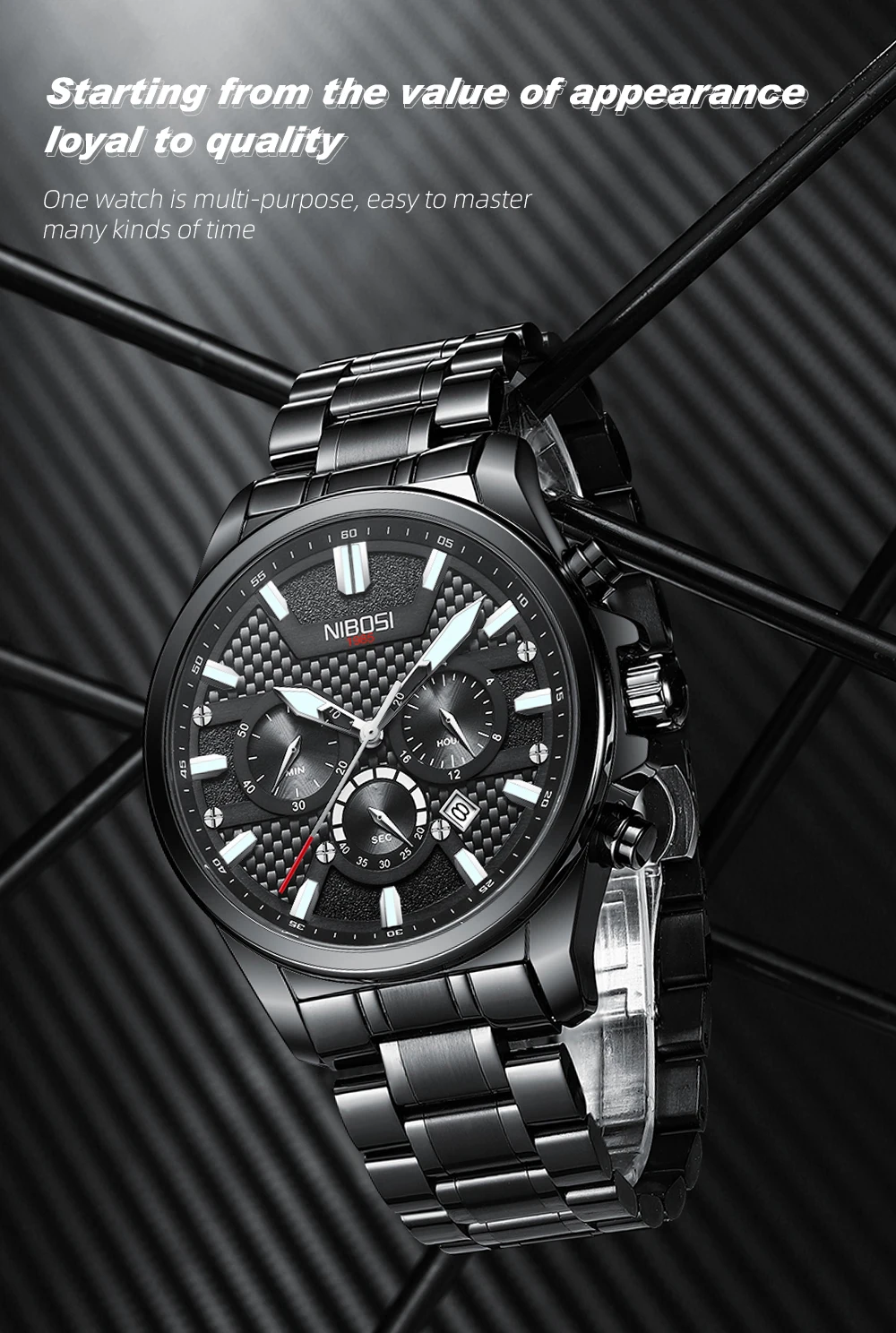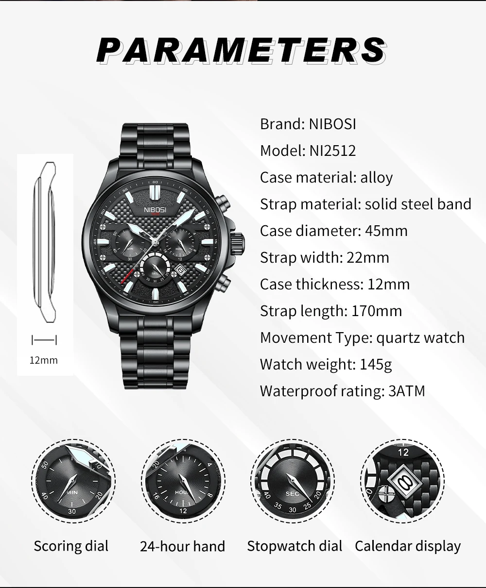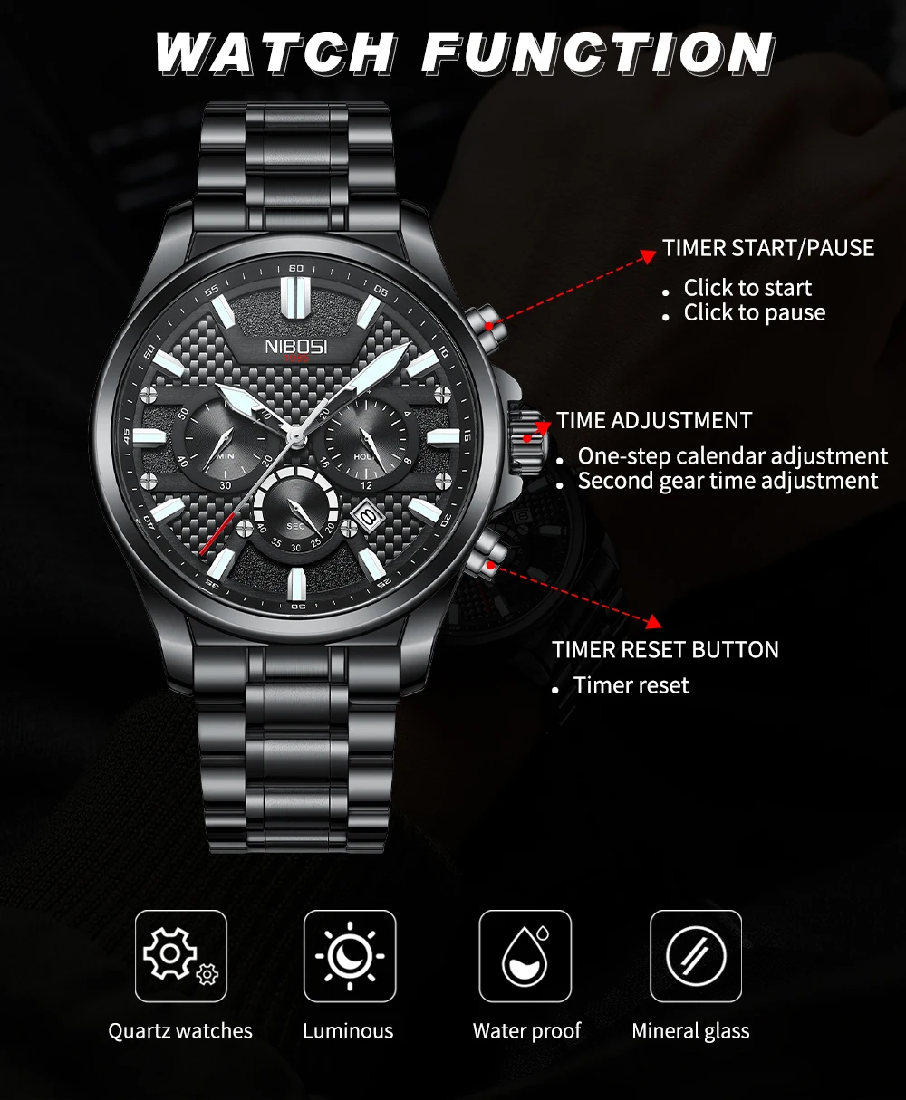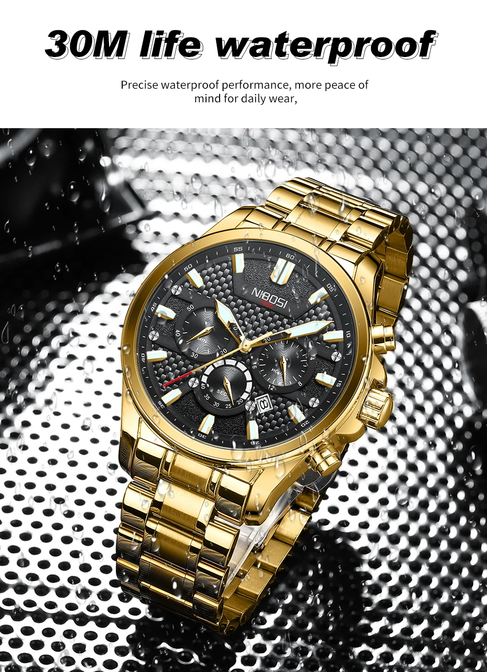 Feature: chronograph,Water Resistant,Waterproof,Small three needle
