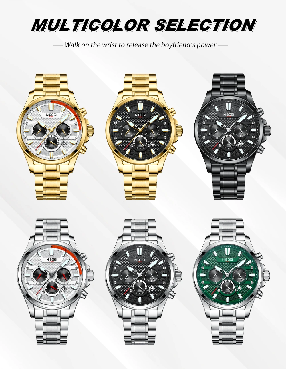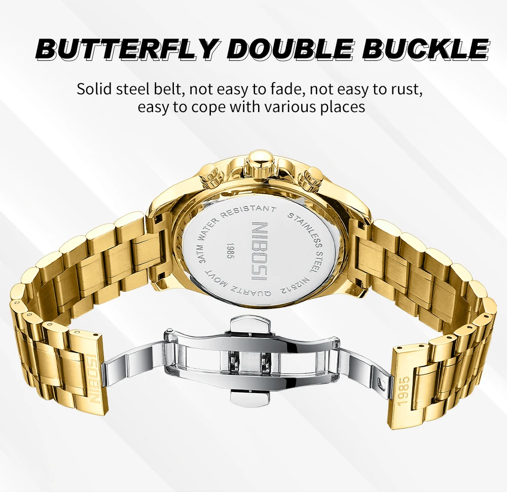 NIBOSI 2512 Fashion Gift Gold Watch Men